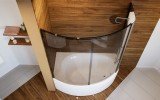 Aquatica’s Curved Glass Shower Cabin comes with a Shower Panel and has been crafted with a contemporary and slick design, which is an ideal match for our Anette Corner Acrylic Bathtub. Manufactured with T2 grey tinted glass for added durability and painted grey aluminum profiles, this shower panel is also equipped with a support handle for added support when entering and exiting the bath. The shower cabin also comes standard with a thermostatic valve; overhead rain shower; bath filler; hand-shower; and a convenient integrated waterproof mirror which are all included in the price.