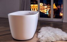 Similar to the Lullaby 2, this larger model also features an elegant oval shape, sculpted ergonomic head support, a center drain and a deep bathing area. Measuring 59 inches / 150 cm in length, this modern freestanding bathtub provides plenty of space and depth for the most enjoyable full-body soak.